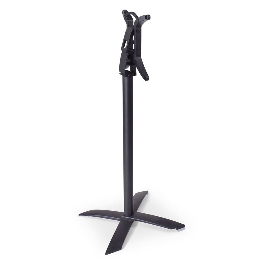 De statafel Bodo is een hoge tafel voorzien van een zwart gepoedercoat roestvrij stalen onderstel en is in combinatie met het volkern tafelblad uiterst geschikt voor intensief buitengebruik.Het hoofd van het onderstel kan 90° draaien waardoor het tafelblad verticaal komt te staan, hierdoor kunnen de voeten van de onderstellen over elkaar geschoven worden in een rij en zijn de statafels zeer compact op te bergen.