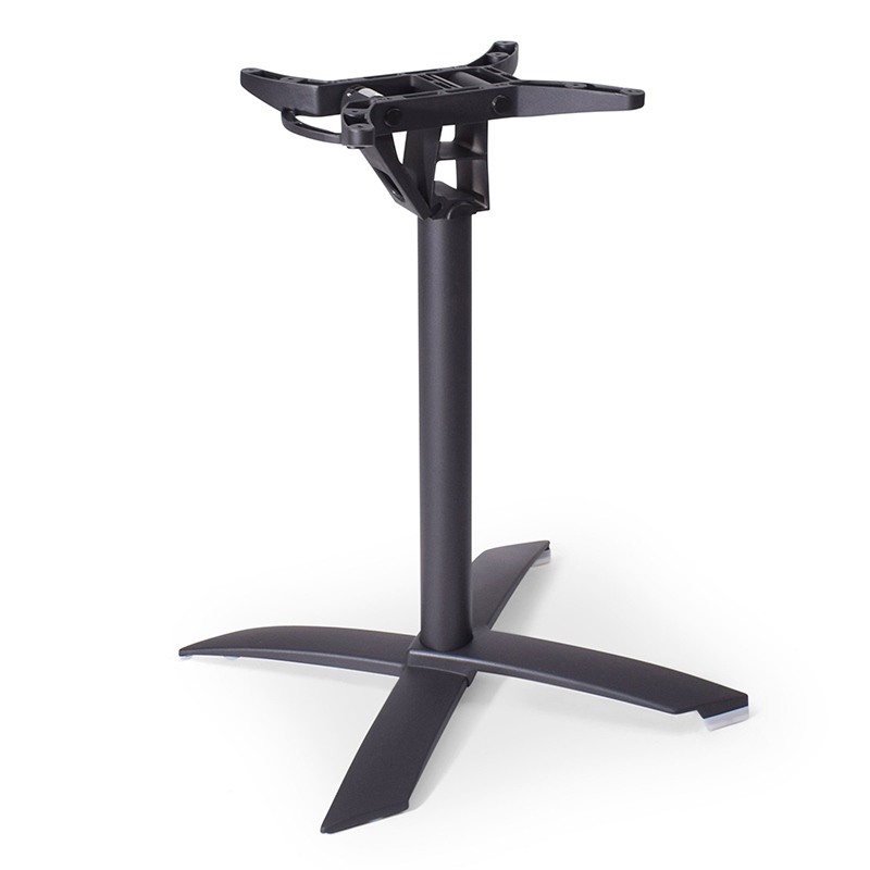 Het hoofd van het onderstel kan 90° draaien waardoor het tafelblad verticaal komt te staan, hierdoor kunnen de voeten van de onderstellen over elkaar geschoven worden in een rij en zijn de statafels zeer compact op te bergen.
